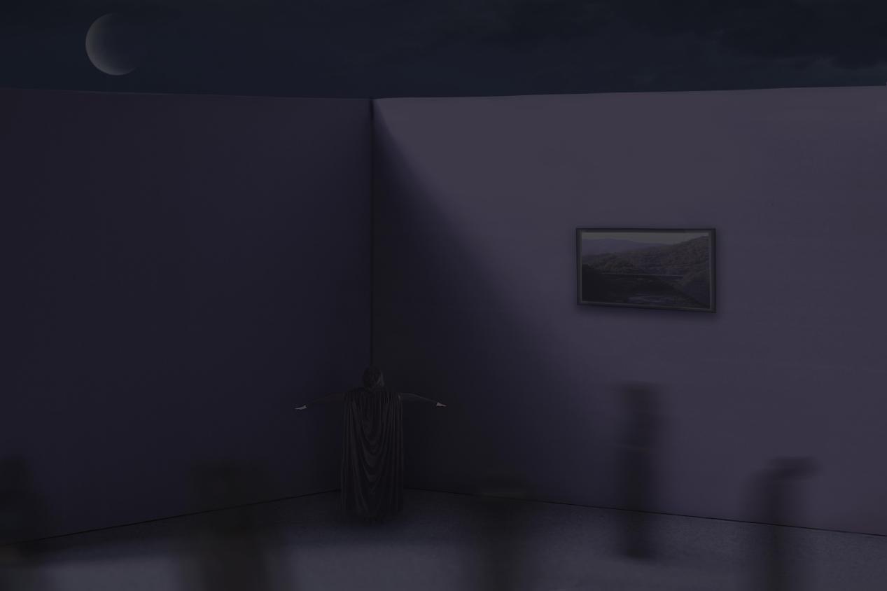潮汐是月亮的引力作用下引起的涨落运动,我时常坐在海边,看着寂静夜空下那一轮明月,带领着随波而来的潮水,从那时起我就开始了对于潮水的思考,其他人的言语和行为是否像月亮对于地球一样,造成每日的潮起潮落,我们是否也会受到其他外力影响情绪的高低?而自我情绪的控制和管理能力是一个步入社会的成年人所需的一个必要条件,那么我们应该如何克制,如何不受情绪的影响从而变得更加理性,所以我就想通过一些具象的实物制造出场景并使用后期制作,创造出与自我情绪能够共存的虚幻世界,进行探讨和分析。