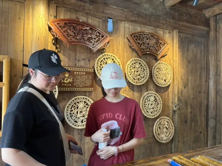 实践期间,团队在云和县江南畲族文化村深入考察,跟随当地手艺人体验传统手艺制作,通过访谈记录畲族历史渊源与迁徙轨迹,收集大量一手文化资料,也在中国畲族博物馆系统学习畲族历史沿革,沉浸式感受畲族语言、服饰、建筑等物质与非物质文化特色,重点调研文化传承人的培养与保护情况,最后几天,团队在景宁畲族自治县畲乡之窗调研畲族文旅发展现状,结合专业知识提出优化建议,同步开展文旅文创产品绘制工作,将凤凰图腾、山哈带纹样等传统元素融入设计。