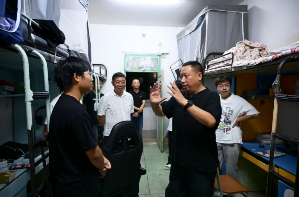 走访过程中,沈其旺亲切询问新生的适应情况和入学后的感受,解答新生学业上的疑问以及遇到的困难。他给予同学们充分肯定,也鼓励大家既要专注学业,也要学会团结互助。沈其旺仔细查看寝室的卫生状况、用电设施,叮嘱同学们提高安全防范意识,亲切问候与关怀拉近和同学的距离,让新生们倍感温暖。