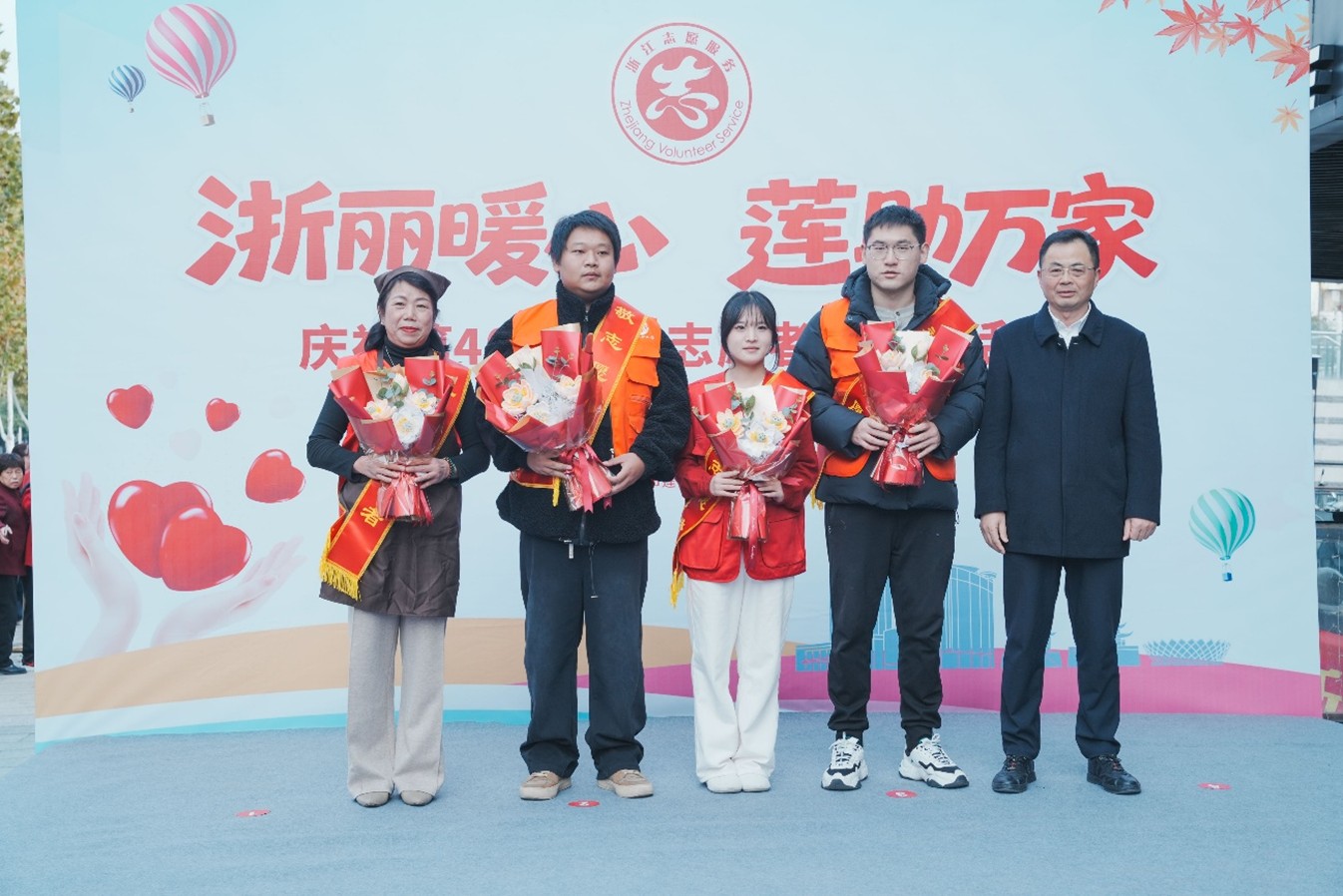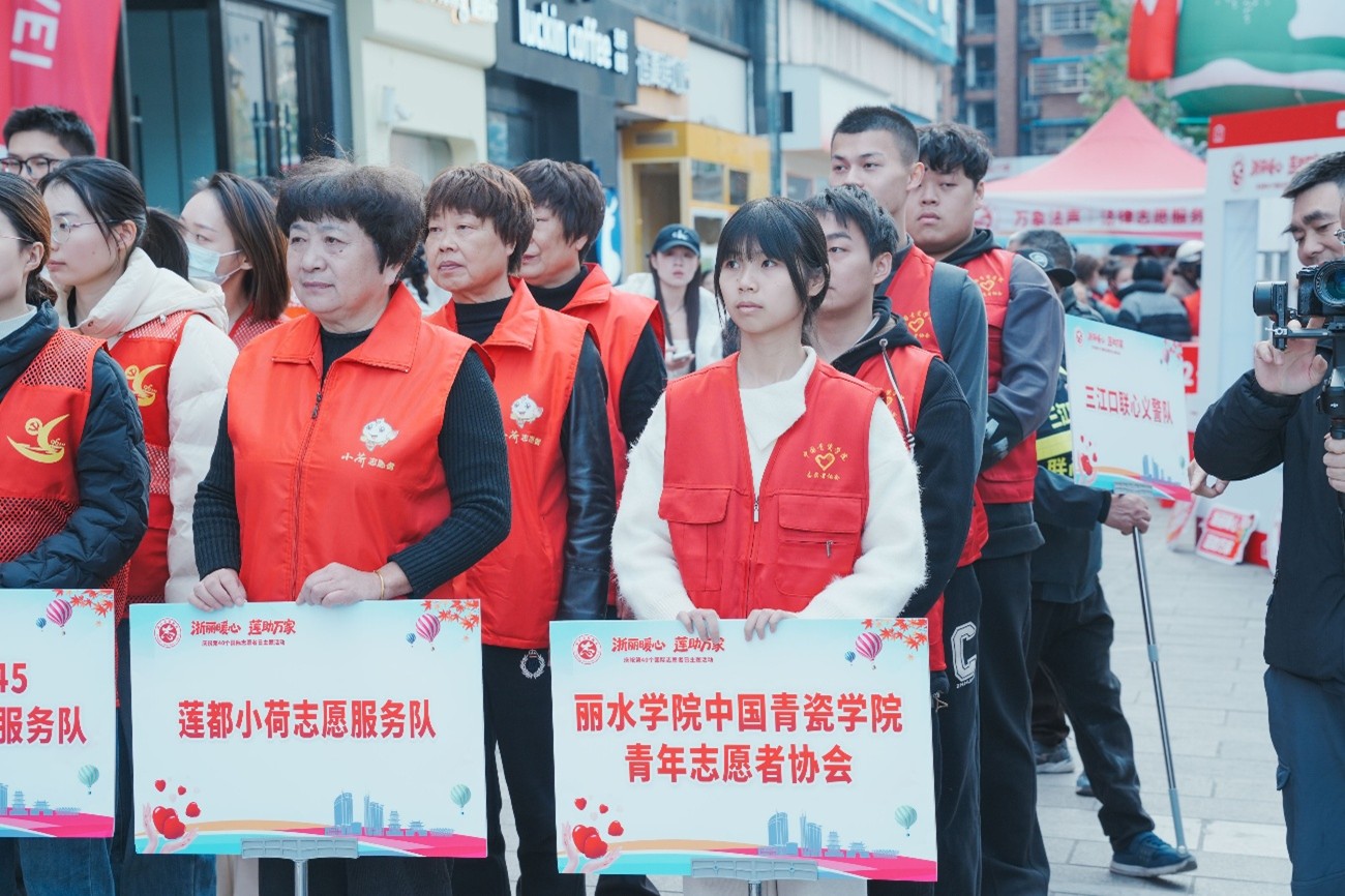 在第40个国际志愿者日,“浙丽暖心 莲助万家”2025年莲都区志愿集市服务活动暨国际志愿者日主题活动在金汇广场温情启幕,中国青瓷学院青志协会作为由各乡镇(街道)推选的16支优秀志愿服务团队之一获赠“小荷之花”与专属礼遇并参加志愿服务。