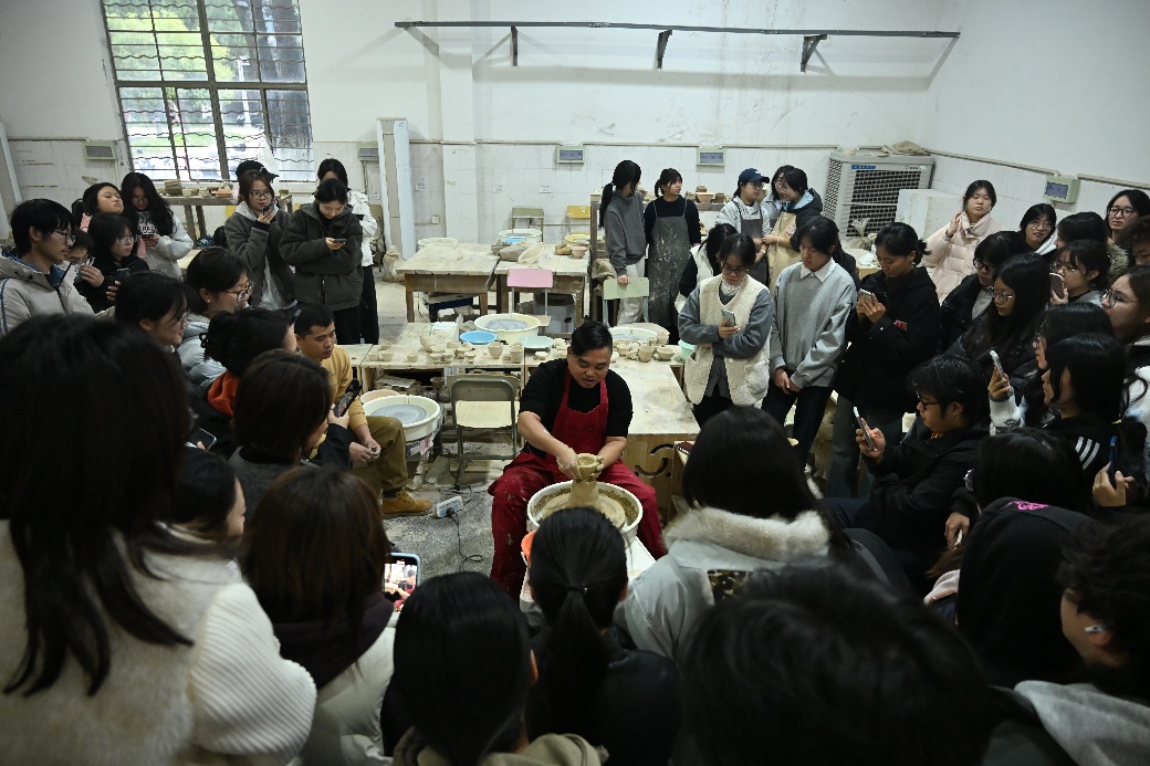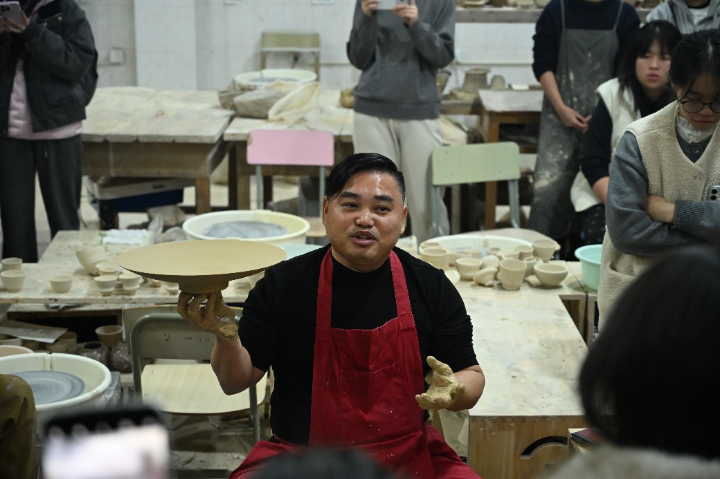 12月4日下午,我院主办的“从传统到当代—陶艺工艺示范与实践交流”讲座在莲花厅陶艺实验室成功举行。本次讲座特邀国家级技能大师、非物质文化遗产传承人占绍林担任主讲人,吸引了众多师生到场学习交流。