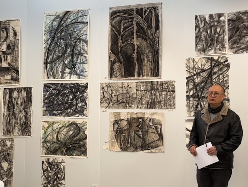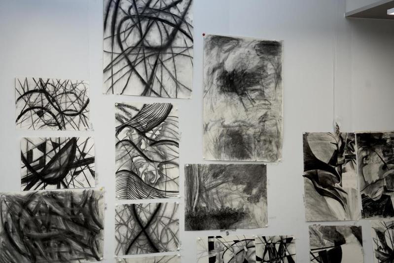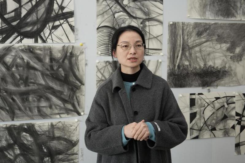 课堂四周墙面挂满了学生习作:狂放的线条交织,细腻的笔触铺陈,在黑白灰的丰富层次中,清晰呈现出学生从观察实物到提炼抽象语言的创作轨迹。周莉副院长认真观摩教学,对课程有机融合中外教学理念、着力培养学生创新思维的模式给予充分肯定。她特别勉励师生重视德语语言学习,为深入理解合作方艺术理念奠定基础,同时要持续深耕艺术语言表达,为专业的可持续发展和国际化特色筑牢根基。