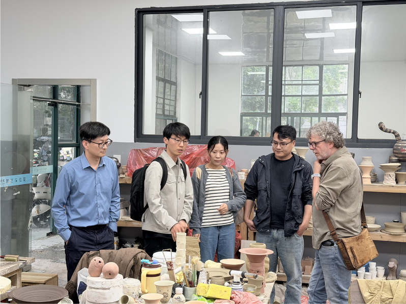 近日,美术学中德合作办学德方专家 Harald Hoppe 走进陶瓷艺术设计专业,参观青瓷实训基地,与师生展开深度专业交流。
