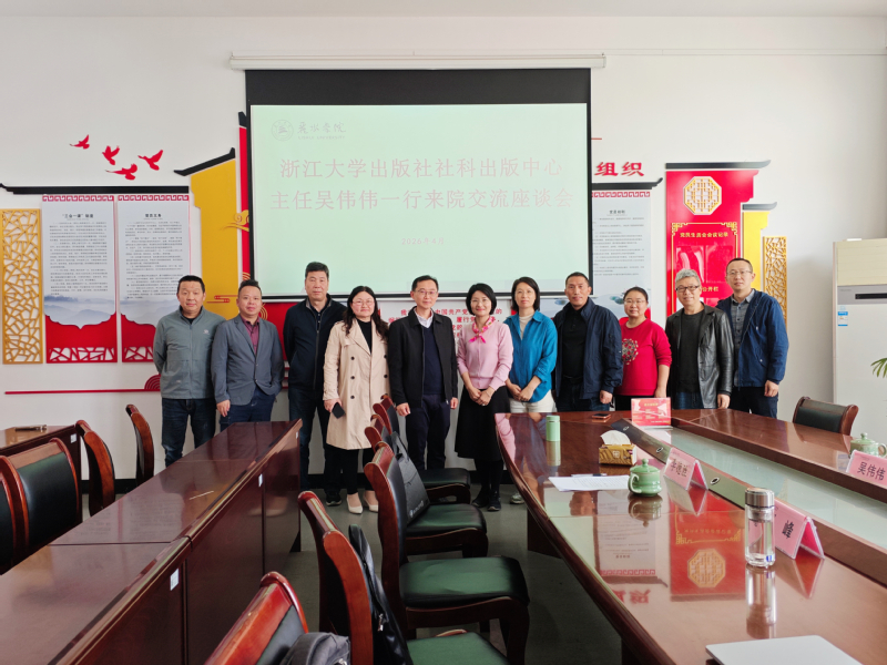 为深化校社联动,加强学术出版、文化传播与学科建设领域合作,搭建优质沟通协作桥梁,4月24日上午,浙江大学出版社社科出版中心主任吴伟伟一行莅临丽水学院中国青瓷学院,开展专项交流座谈活动。丽水学院党委委员宣传部部长廖峰、中国青瓷学院副院长李德胜及相关师生代表参加本次座谈会。