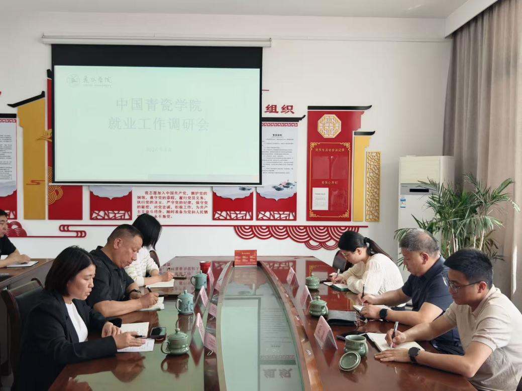 4月20日,党委副书记叶华松一行到中国青瓷学院开展就业工作专题调研会,院长沈其旺,院党委书记李薇,院党委副书记杨吴伟,各系专业负责人和全体辅导员参加。