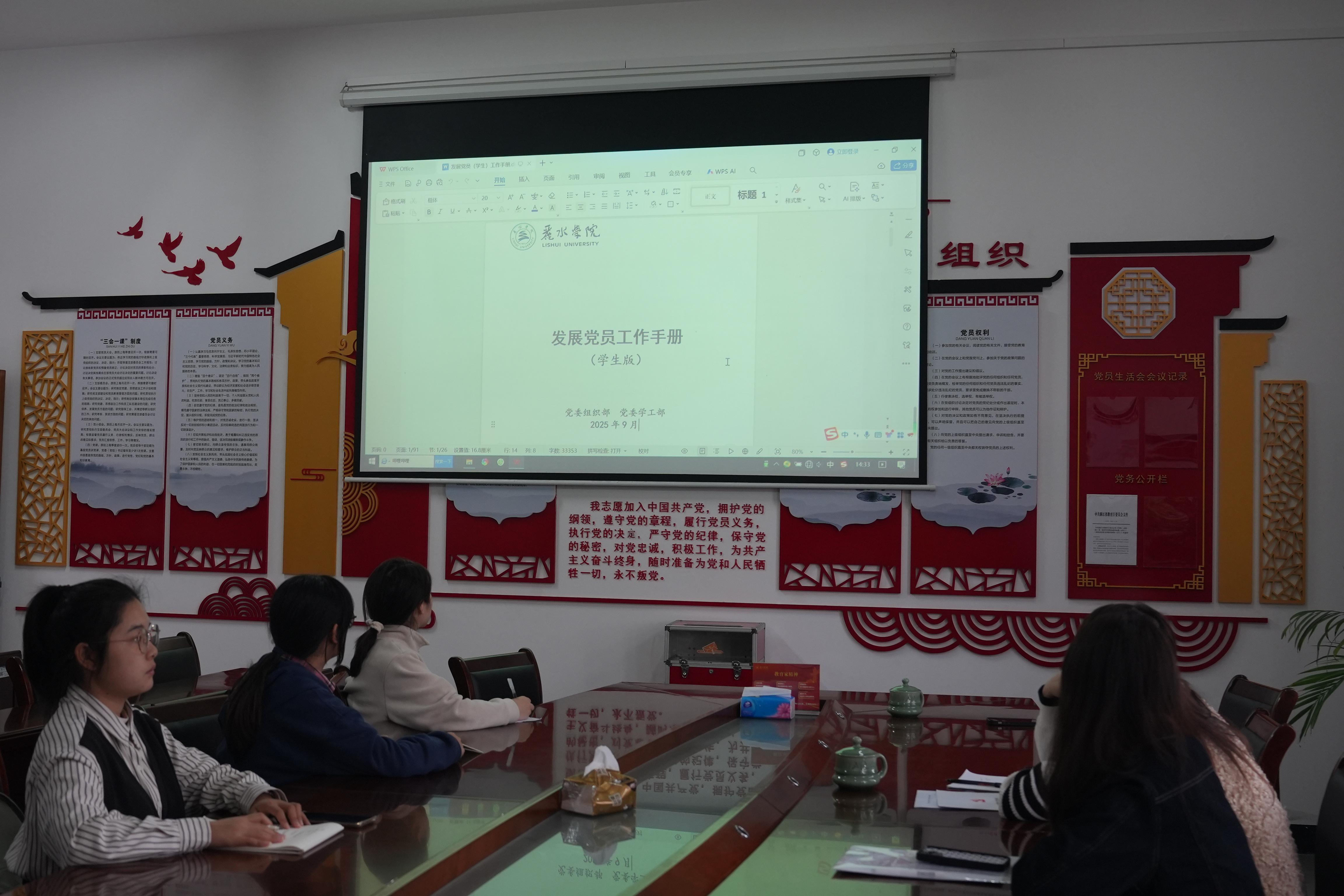 为进一步规范学院发展党员工作流程,确保发展党员工作的严肃性、规范性与科学性,我院面向发展对象在知止楼306组织开展 “发展党员工作基本程序” 专题讲座,由院党委组织委员边陈琛主讲。
